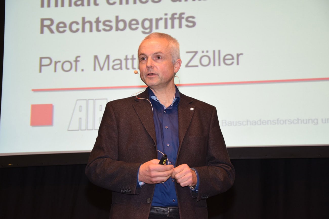 Die Veranstaltung fand am 7. und 8. November 2017 im Fuldaer Kongresszentrum statt. Die Anerkannten Regeln der Technik waren ein Schwerpunkt am ersten Veranstaltungstag. Juristen wie Techniker nahmen Stellung, wie diese von Sachverständigen zu Rate gezogen werden können oder auch nicht. Prof. Dipl.-Ing. Matthias Zöller, Honorarprofessor für Bauschadensfragen am KIT Karlsruher Institut für Technologie (Universität Karlsruhe) und Inhaber eines eigenen Architektur- und Sachverständigenbüros, unterbreitete Vorschläge zur Inhaltsbestimmung des Rechtsbegriffs. „Es kommt auf die technischen Zusammenhänge an und nicht (nur) auf Regelwerke!“ Diese seien erstellt worden als Prognose, als Anleitung, wie gebaut werden müsse, damit das Werk für die im konkreten Fall vorgesehene wirtschaftliche Nutzungsdauer bei zu erwartenden, extremen Beanspruchungen unter Berücksichtigung von (möglichen) Instandhaltungen gebrauchstauglich bleibt. „Für eine Bewertung – ob mit oder ohne Schaden – sind sie nicht verfasst worden“, so Zöller. Regelwerke könnten bei der Bewertung eine Orientierung und Hilfestellung geben. Ob sie aber wie eine Rechtsnorm anzuwenden seien, sei eine Rechtsfrage und keine technische. „Bei der Aufklärung von technischen Sachverhalten sind bei Bewertungen rechtliche Aspekte auszuklammern. Technische Bewertungen haben daher zunächst zurückzustehen, ob Mangelrechte oder andere Ansprüche gegenüber Vertragspartnern bzw. Dritten bestehen oder nicht. Erst danach könnten Sachverständige durch Variantenbildungen über eventuelle Anspruchsverhältnisse informieren“, so Zöller.