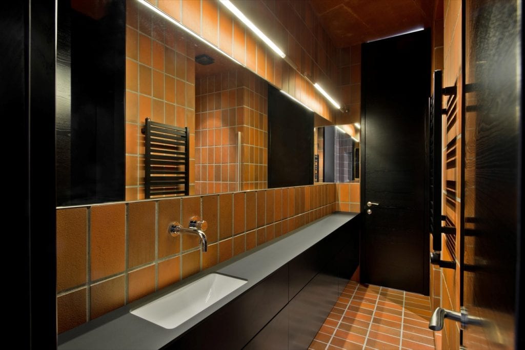 Aus Barzdas Sicht gab es mehrere Gründe, sich in diesem Bereich für diese Fliesen zu entscheiden: „Wir wollten ein natürliches Material, das den ‚Raum füllen‘ kann und ein Gefühl von Dauerhaftigkeit vermittelt.“ Die Farbgebung erinnert dabei an die Backsteinbauwerke der Altstadt von Vilnius. Zudem waren die Designer der Auffassung, dass Keramik die gewünschte ruhige Atmosphäre schafft. Auffälligstes Kriterium ist jedoch die Befreiung der Fliese aus ihrer gewohnten Rolle und ihre Verwendung im Vordergrund und Zentrum des Raums. So unterstreicht das „Bazillion“-Apartment auf überzeugende Weise die Vielseitigkeit von keramischen Wand- und Bodenbelägen, die je nach Kontext stilistisch variabel und kreativ einsetzbar sind.