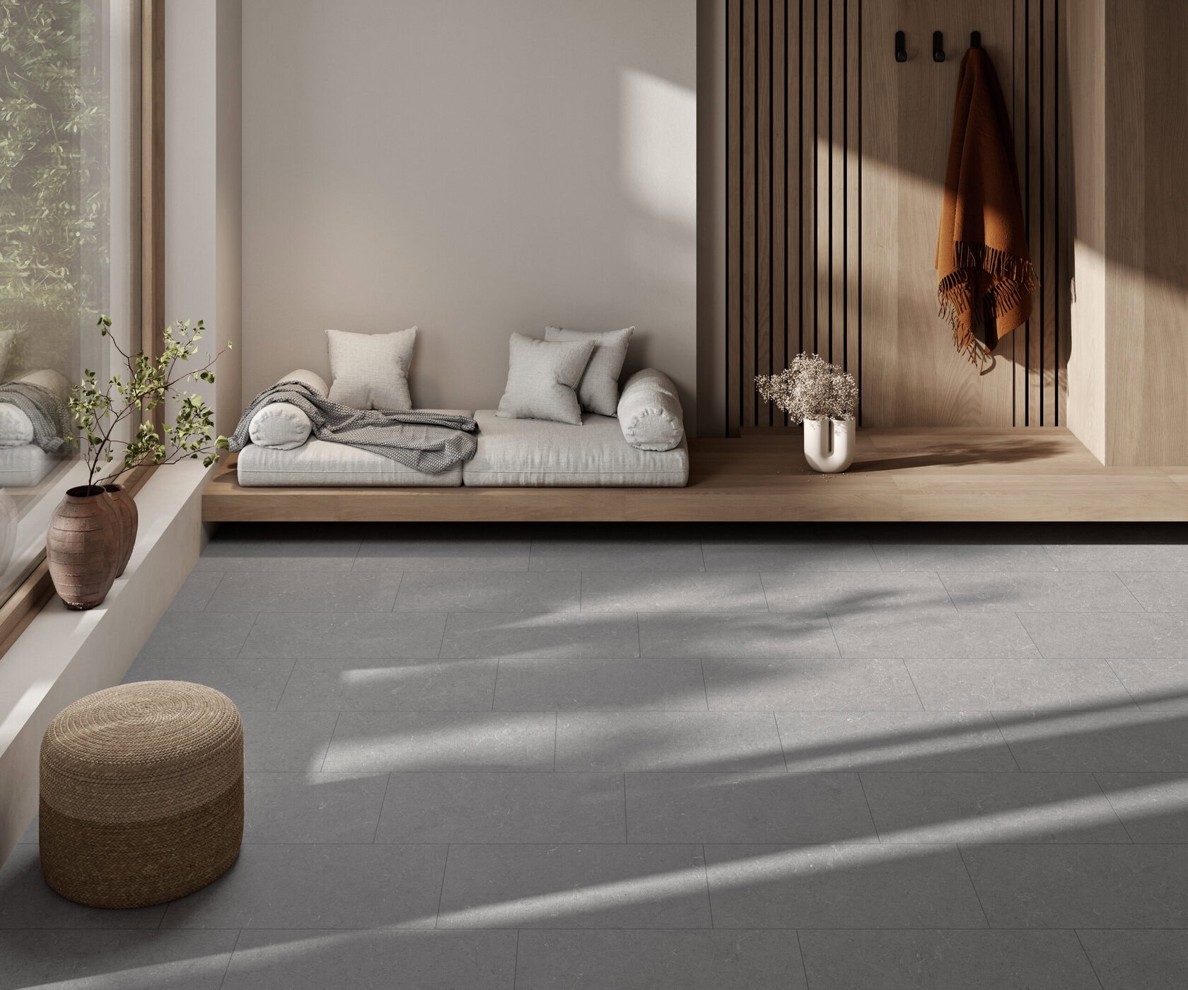 Das Ergebnis ist eine ausgewogene einhüllende und vielseitige Oberfläche die den taktilen Charakter von Stein mit der Präzision und Leistungsfähigkeit von Keramik kombiniert.