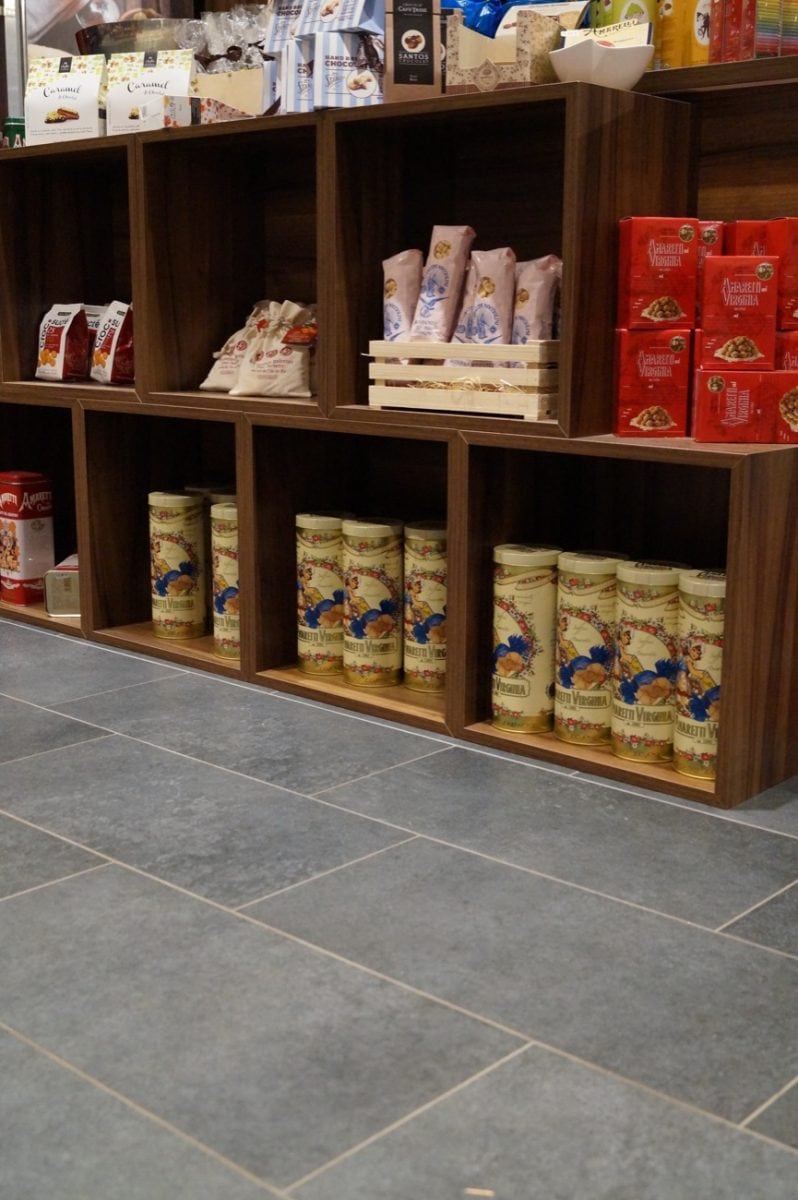 Im neu gestalteten Ferdinand’s in Aschaffenburg, einem Delikatessengeschäft mit angegliedertem Café und Bistro, sollte mit bewusst ausgewählten Materialien eine sympathische Botschaft und eine eigene Handschrift ausgedrückt werden. „Mit dem Ladendesign wollte ich die Hochwertigkeit der Produkte unterstreichen“ erläutert Betreiber Andreas Römer, um gleichzeitig zu ergänzen: „Keinesfalls sollten dadurch aber Barrieren aufgebaut werden. Hochwertig ja, aber nicht abschreckend elitär.“ Umgesetzt wurde die Idee schließlich mit Bodeefliesen von Agrob Buchtal.