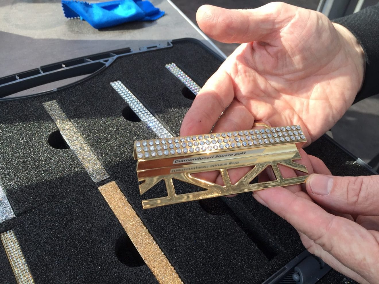 Beim Profilhersteller Dural wurde es nobel: Das Unternehmen zeigte eine neue Profilserie mit Swarowski-Kristallen. Wer möchte kann die Profile in Zukunft auch in zwei verschiedenen Goldarten bestellen.
