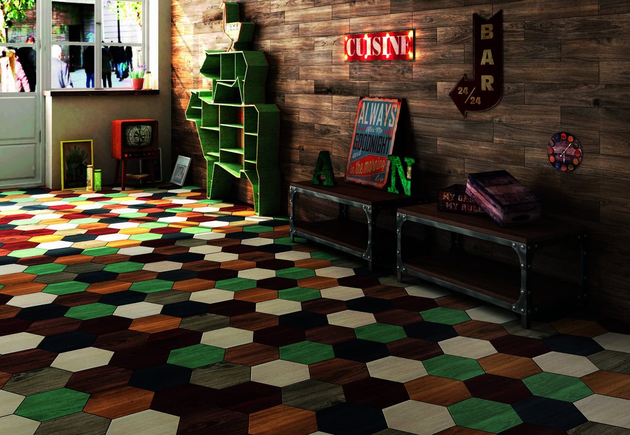 „Dramatic Interior“ ist ein aktueller Fliesentrend aus Spanien, der mit Referenzen an die 1920er-Jahre spielt. Hier werden elegantere und synthetischere Designs vorgeschlagen, die mit einer dunklen Farbpalette abgedeckt werden. Zu den aktuellen Farbexperimenten passt auch der Fliesen-Trend „Savage Soul“. Hier finden sich Dekore, die durch Dschungelmotive, große Pflanzenarrangements und exotische Gewächse inspiriert wurden. Der Trend bietet eine Palette voller intensiver Grüntöne, dunklen Erdfarben und intensiven Blau- sowie Aquamarintönen. Für den Objektbereich hält der „Plug & Play“-Trend besondere Designideen bereit. Gerade in den neuen Arbeits- und Lifestyle-Modellen wie Co-Working- oder Co-Living-Areas ist Farbe ein wichtiges Element. Die Farbpalette der „digitalen Welt“ zeigt lebendige Töne wie Blau, Rosa und Purpur.