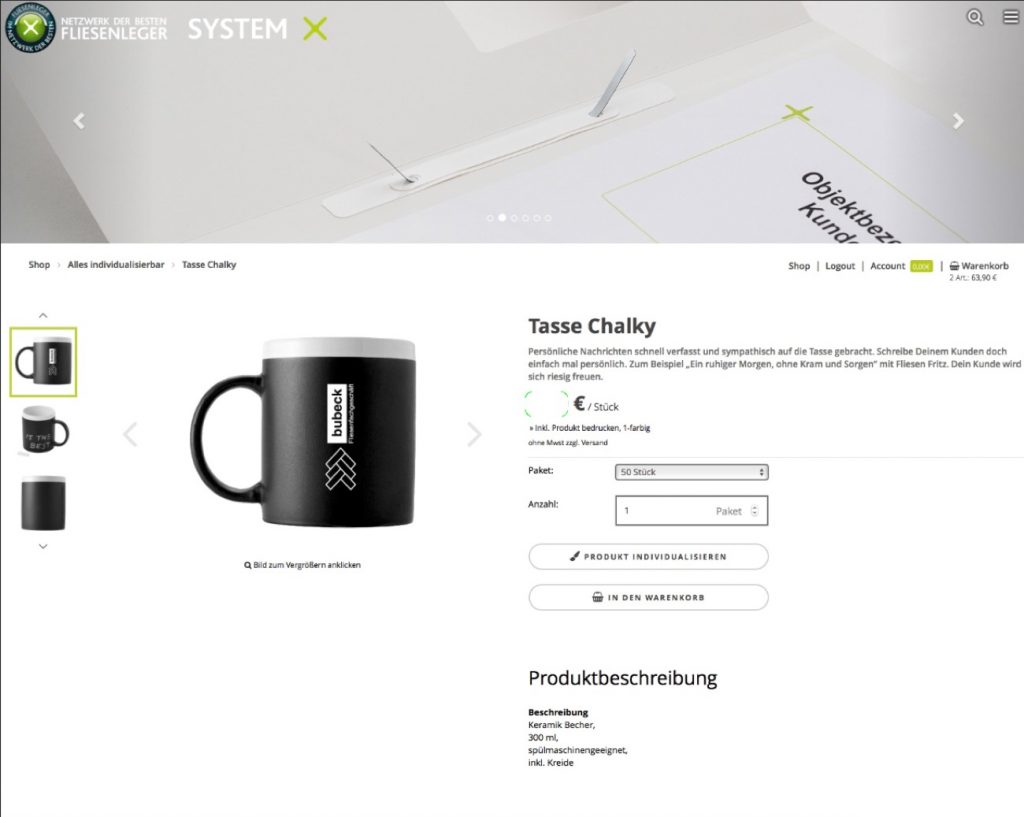 Das Angebot der Plattform umfasst die Möglichkeit sich eine individuelle Geschäftsausstattung, Arbeitskleidung, Baustellenplanen bis hin zu personalisierten Kundengeschenken, die der Fliesenleger zu besonderen Konditionen beziehen kann. „Wir haben für die Plattform ein Konzept entwickelt, welches ideal auf die Bedürfnisse der Fliesenleger angepasst ist“, berichtet Mario Meuler, Geschäftsführer der codex GmbH & Co. KG. „Diese Konzeptionsarbeit müsste ein Fliesenleger bei einer Agentur alleine tragen und einen geeigneten Werbepartner beauftragen. Dies alles haben wir bereits für ihn übernommen.“