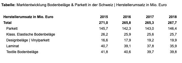 Umsatzsteigerung für Schweizer Markt von Bodenbelägen und Parkett