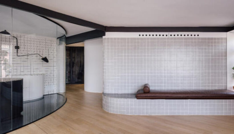 Bei diesem Projekt hob die Jury die Verwendung einer zeitlosen Standardfliese von 10×10 cm im gesamten Haus hervor, die an die Plastizität des Hauses angepasst ist. Mit nur einem Fliesenmodell wird Bewegung erzeugt, und es ist vielseitig genug, um alle Arten von Oberflächen zu verkleiden, auch gebogene. Die Jury lobte auch die geschickte Wahl der im gesamten Projekt verwendeten Farben.