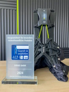 Das BionicBack Exoskelett von hTRIUS hat als erstes Exoskelett das Gütesiegel der AGR Aktion Gesunder Rücken für besonders rückenfreundliche Produkte erhalten. Diese Auszeichnung wird nur an Produkte verliehen, die als „rückengerecht“ eingestuft werden und somit die Rückengesundheit nachhaltig fördern.