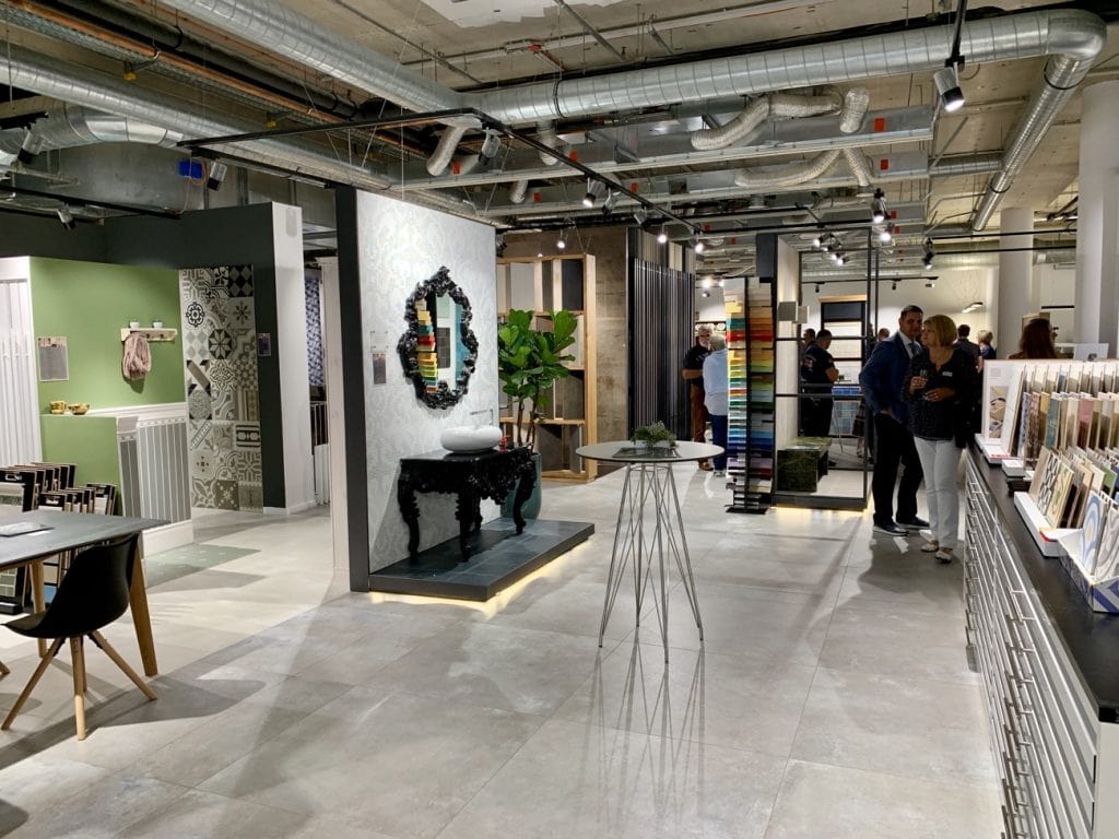 Bereits seit 1999 ist das Familienunternehmen Kerana im stilwerk mit einer Ausstellung vertreten, die zum Schluß 900 qm Fläche umfasste. Mehrmals hatte Kerana die Präsentation dort erweitert. Ein Manko blieb jedoch der Standort in der 4. Etage, der nicht so viel Laufkundschaft mit sich brachte. Als dann ein Ladenlokal in der 1. Etage der Designer-Shoppingmall frei wurde, mussten Geschäftsführer Sören Böldicke und seine Frau Steffi nicht lange überlegen. „Das war eine einzigartige Chance, die Ausstellung von Grund auf zu erneuern,“ weiß Sören Böldicke zu berichten. Die Fläche war zwar dort etwas kleiner, aber strategisch besser gelegen. Kunden, die in den unteren Etagen nach Möbeln oder anderen Wohnaccessoires suchen, finden so auch den Weg in die Fliesenausstellung. Im Juni 2018 begannen schließlich die Planungen, bereits im April 2019 war die neue Ausstellung fertig. Es folgte einige Wochen mit Feinschliff, bevor dann Anfang September die offizielle Eröffnung mit Kunden und Geschäftspartnern erfolgt.