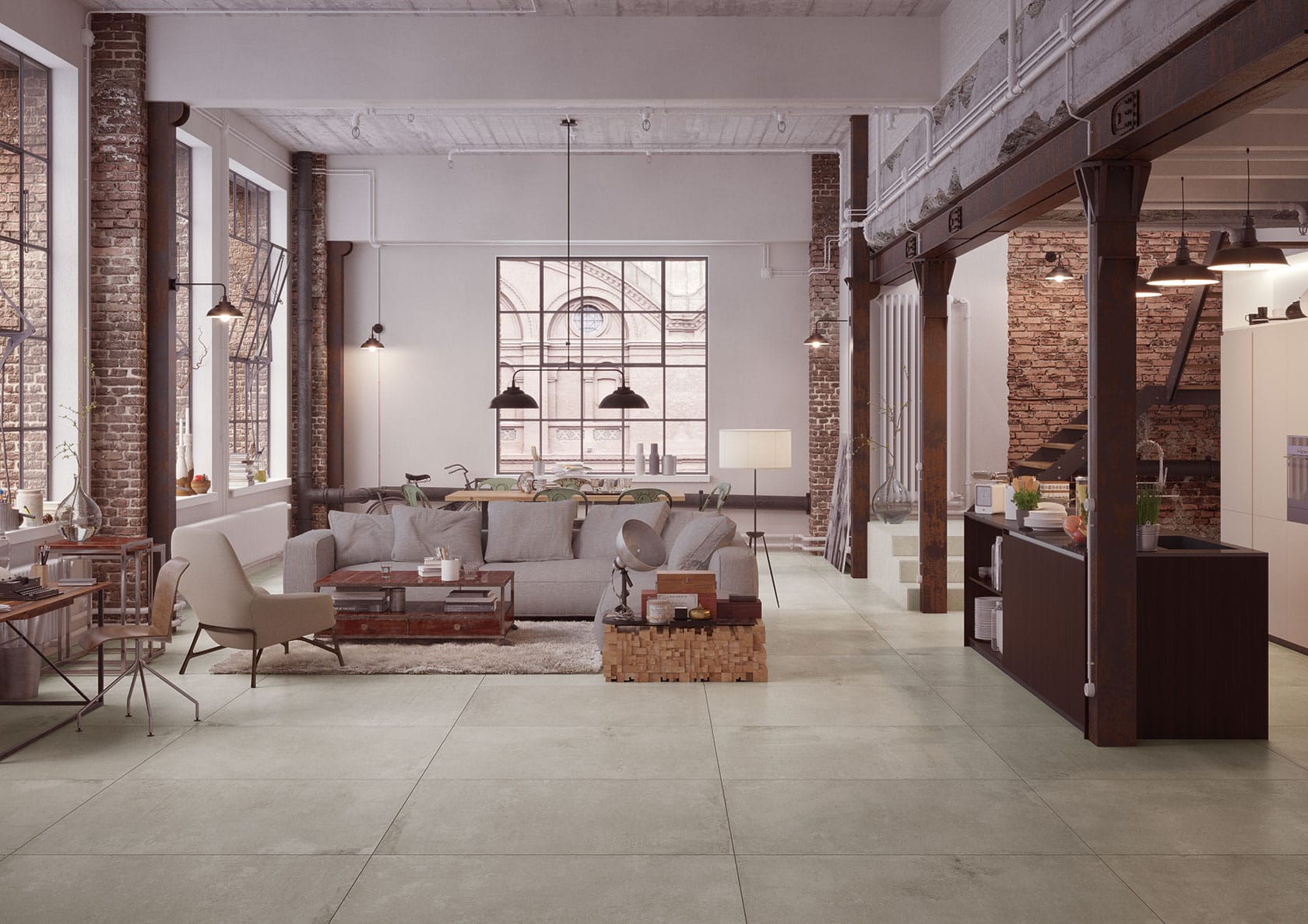 Die Serie Tecno Score wurde durch das Thema der Evolution inspiriert. Entstanden ist eine Feinsteinzeugfliese, die auf die Anmutung von metamorphem Schichtgestein mit überlagernden Beton-Elementen setzt. Zusätzlich belebt wird die Oberflächenstruktur durch ein kontrastreiches Nebeneinander von charakteristischen Grafiken der Natur und menschengemachten Elementen; Laufspuren von Wasser ergänzen sich dabei mit eingearbeiteten Kratzern zu einem zeitlos-dynamischen Bild von Dauer und Bewegung, das sich je nach gewähltem Interieur-Konzept in unterschiedlichste Raumsituationen vom Fabrikloft bis zur luftigen Stadtvilla einbinden lässt.