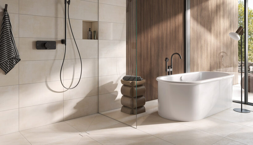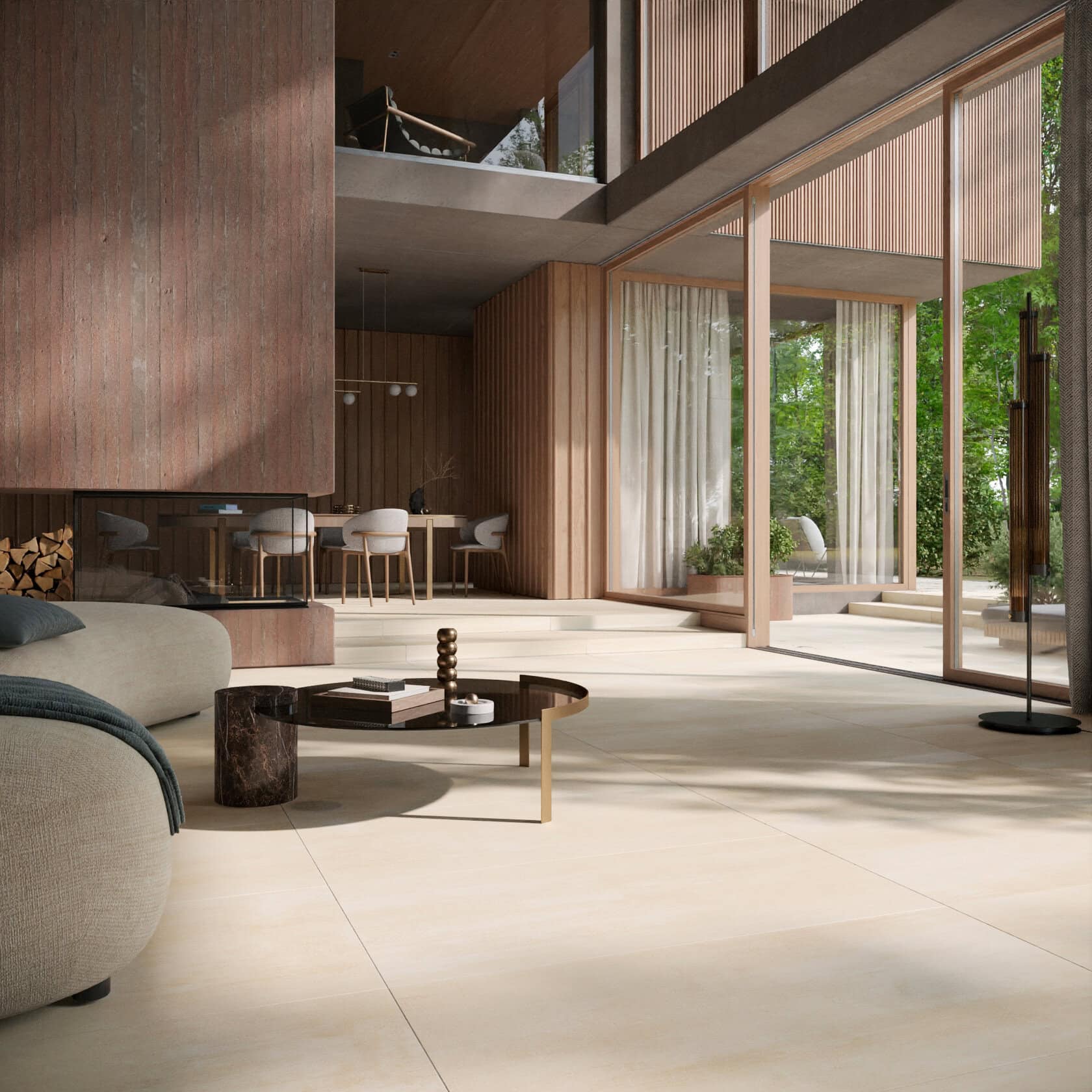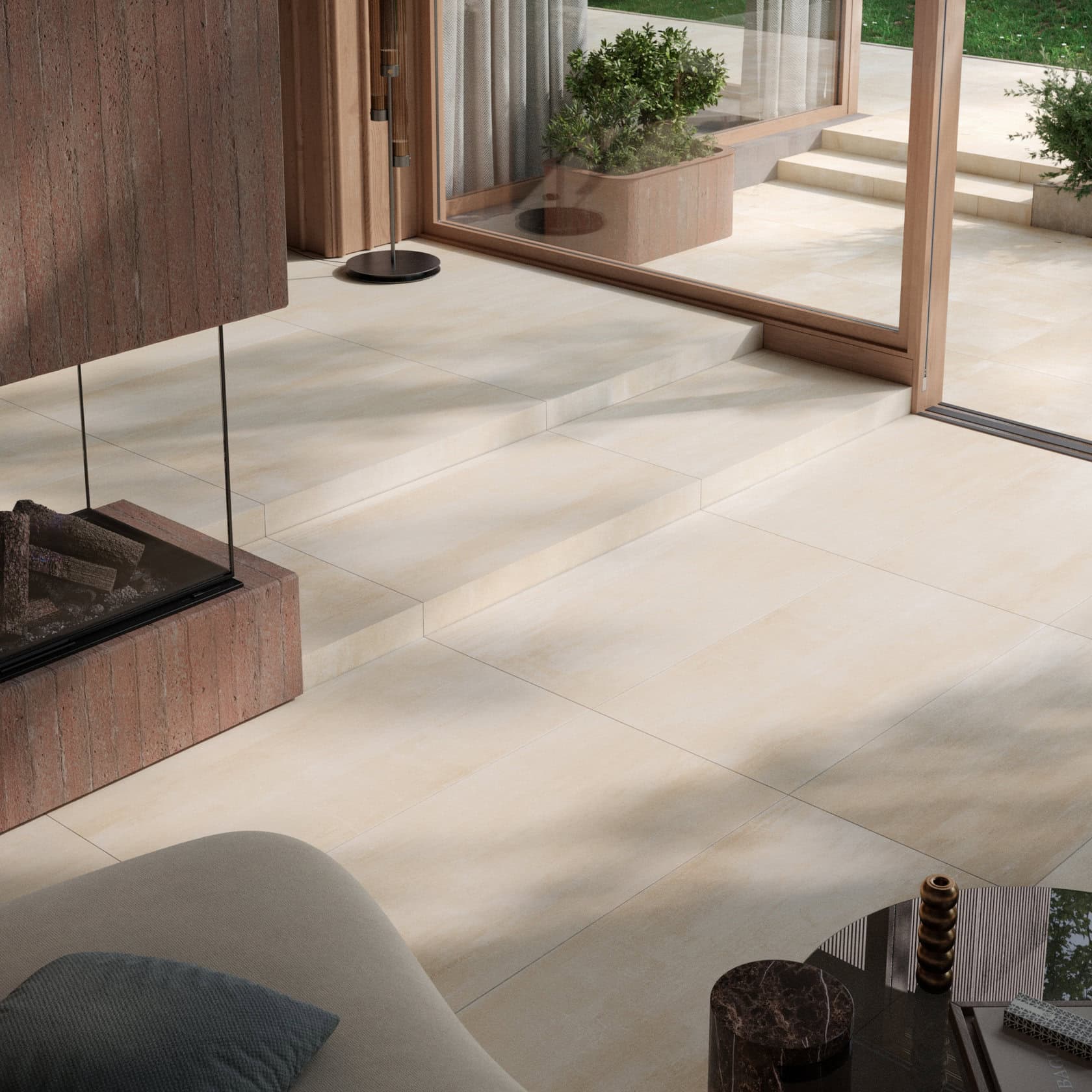 Das ist Nexos im Konzept. Als Gartenplatte für außen. Und im passenden Fliesenformat für innen. Format- und maßgenau. Das ist anwendungsstarkes Architekturdesign. Und in beige der neue Urban Design Trend.