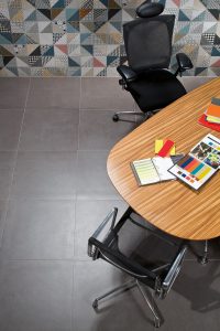 Als flexibel und ausdauernd belastbar erweist sich das Angebot des Herstellers auch bei der zunehmend wechselnden Nutzung von Arbeitsbereichen. Verschiedene Arbeitsgruppen, spontane Konferenzen oder neue Ausstellungen…  auf keramischen Bodenbelägen lassen sich Schreibtische und Stühle leicht bewegen. Die Flächen sind unempfindlich, lichtecht, hoch belastbar und einfach gründlich zu reinigen.