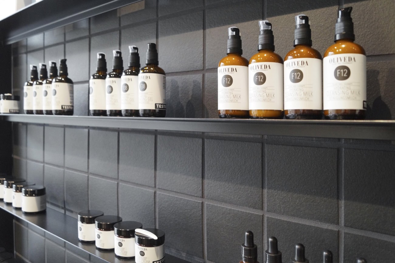 Für den Oliveda Flagship Store in Düsseldorf wurde ein Konzept realisiert, das von den Kernelementen der Markengeschichte inspiriert ist. Kassettendecke und Kassentresen aus Birkenholz schaffen eine naturbezogene Atmosphäre und repräsentieren die Struktur des Baumhauses, in dem 2001 unter Andalusiens Sonne das erste Elixier von Oliveda entstand. Schwarze Wand- und Bodenfliesen als Sonderfertigung innerhalb der Serie Craft von Agrob Buchtal sowie das Waschbecken aus Zink erinnern an eine Laborumgebung und greifen das Thema „Olive Tree Pharmacy“ auf, wie das Label seine Stores bezeichnet. Ein wichtiger Aspekt war auch die spezielle Farbwelt, die mit den Fliesen von Agrob Buchtal an Wand und Boden kreiert werden konnte.