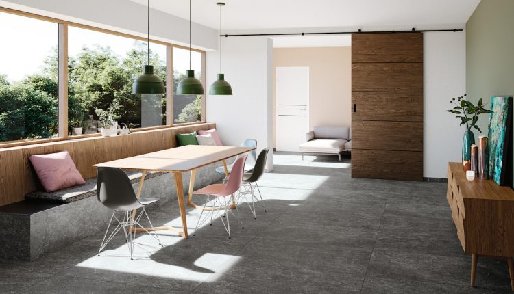 Timeless von Agrob Buchtal besticht durch ein ausgefallenes Design. In Anlehnung an den typischen Look von Schiefer ist eine Optik entstanden, die mit verschiedenen Stilwelten harmoniert. Beispielhaft nennt Agrob Buchtal Einrichtungstrends wie „Casual Living“, „Modern Classic“ oder „Country Feeling“. Für stimmige Konzepte offeriert der Hersteller die gängigen Bodenformate 30×60, 60×60 Zentimeter sowie 60×120 Zentimeter in den drei wohnlichen Farben Anthrazit, Beige und Grau. Ein modernes Schnittdekor im Mosaik-Design (verlegefreundlich auf 30×30 Zentimeter-Bögen geliefert) ergänzt die Bodenfliesen und ermöglicht spezielle Kompositionen. Die Gestaltung vertikaler Flächen übernehmen passende Wandfliesen in Naturweiß steinmatt im Format 30×60 Zentimeter. Ein Highlight stellt die Dekorfliese Arita dar, die in Zusammenarbeit mit dem renommierten Keramiker Fritz Roßmann entstand.