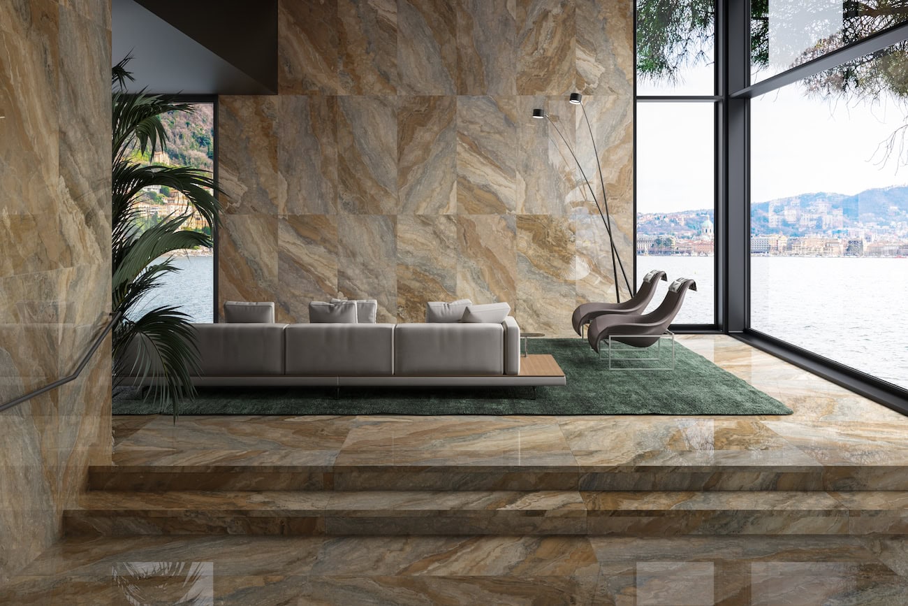 Die Prestigio-Kollektion von Ceramiche Refin erfreut sich schon seit letztem Jahr äußerster Beliebtheit. Nun erweitert Ceramiche Refin sein Sortiment um zwei neue edle Designs: Macaubas und Wings. Macaubas wurde der Eleganz eines Quarzits aus Südamerika nachempfunden. Ihr spezieller Schliff verleiht den Fliesen ein majestätisches Aussehen: Die Macaubas-Blöcke sind kreuzweise geschliffen, wodurch die Verästelung ihrer Aderung besonders schön zum Vorschein kommt und sie sich von allen anderen geäderten Marmorsteinen hervorheben. Prestigio fasziniert mit seinem cremeweißen Hintergrund, der von einer feinen hell- und dunkelgrauen Aderung wellenförmig durchzogen wird. Es entstehen dynamische, klare Muster, die ihren Betrachter in den Bann ziehen.