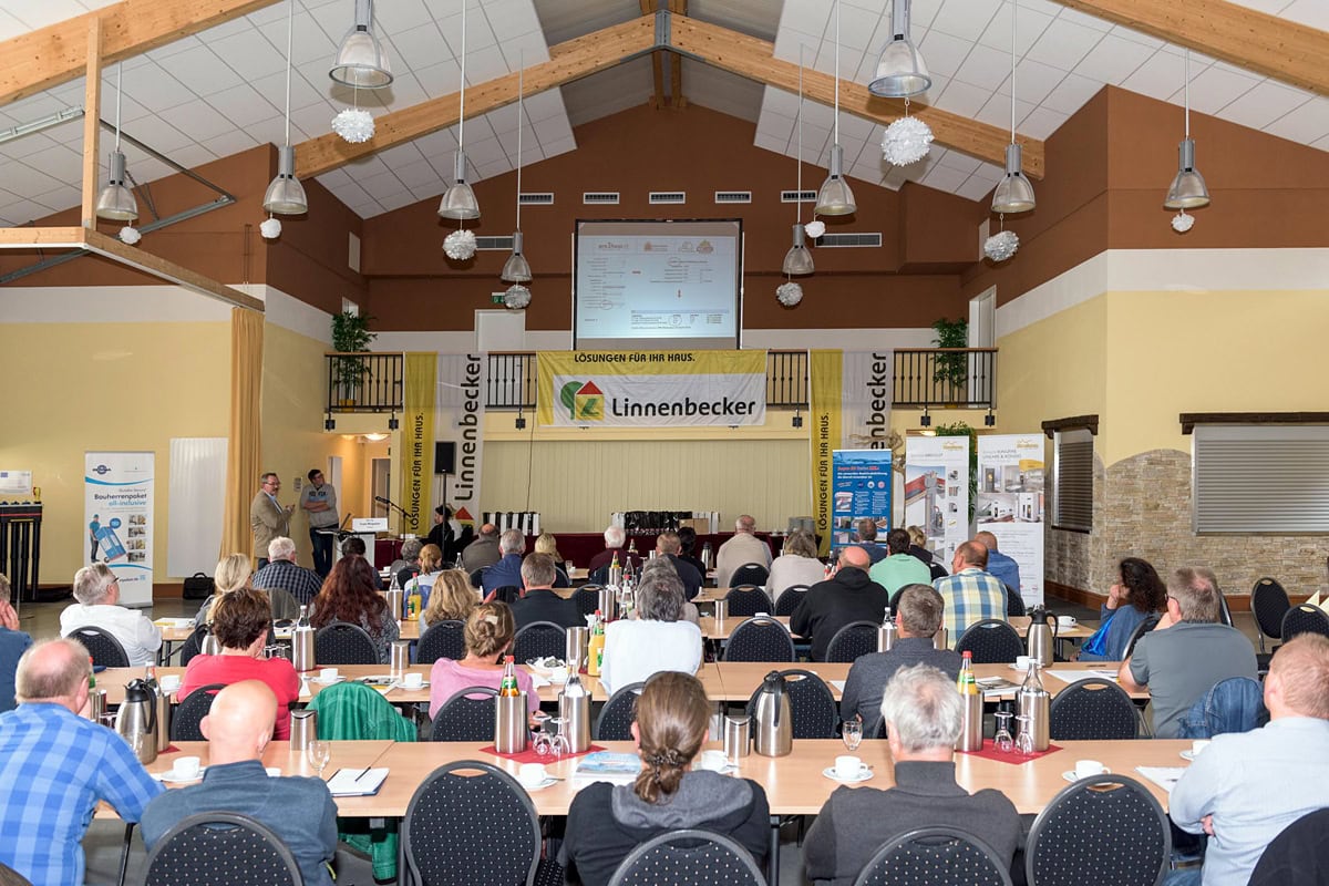 Auf Einladung der Linnenbecker-Niederlassungen Greifswald und Stralsund kamen jetzt über 70 Architekten, Planer, Bauträger und Unternehmer im Golfpark Strelasund in Süderholz zusammen. Der „Fachkongress für Energetisches Bauen“ im Rahmen der Linnenbecker-Modernisierungsoffensive lockte mit einem fachlich abwechslungsreichen und interessanten Programm. So standen Vorträge von Pro3Haus (EnEV), Doyma Dichtungssysteme, Schiedel Hauslüftungen und Sopro Bauchemie auf dem Programm, die beim Fachpublikum auf reges Interesse stießen. Die vier Experten verstanden es, die Zuhörer mit ihren Themen zu fesseln.