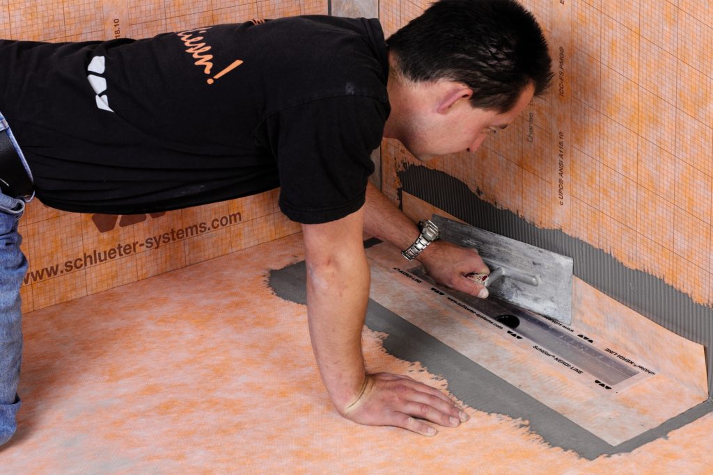 Für die Arbeit mit Fliesen und Platten sind vor allem die Beanspruchungsklassen wichtig, die in den Normen DIN 18531, 18534 und 18535 geregelt werden. Eine der wichtigsten Neuerungen ist dabei: Erstmals sind dabei auch Abdichtungen im Verbund (AIV) aufgenommen worden. In den Teilen 5 und 6 der DIN 18534 für die Innenraumabdichtung sind bahnen- und plattenförmige Abdichtungsstoffe, wie zum Beispiel Schlüter-Kerdi oder -Kerdi-Board, jetzt fest verankert. Ein logischer und überfälliger Schritt, wenn man bedenkt, wie lange solche Abdichtungen schon zur täglichen Praxis für Fliesenleger gehören. Die bisher immer notwendige Vereinbarung als Sonderkonstruktion mit dem Bauherrn fällt nun weg, da AIV als anerkannte Regel der Technik nun normativ erfasst sind. Ein Hauptaugenmerk liegt in diesem Zusammenhang darauf, dass alle Komponenten einer AIV im System nach dem allgemeinen bauaufsichtlichen Prüfzeugnis (abP) oder nach den European Technical Approval Guidelines (ETAG 022) geprüft sein müssen. Dazu gehören natürlich auch Einbauteile wie Wannenranddichtbänder oder Entwässerungssysteme.