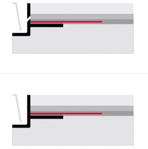 Bodenaufbau für eine Duschrinne nach DIN 18534: Oben eine Variante mit Sekundärentwässerungsöffnung, wie sie in der Entwurfsphase vorgeschlagen wurde, unten der geschlossene Rinnenkörper, wie ihn die gültige Norm jetzt ausschließlich darstellt. Foto: TECE