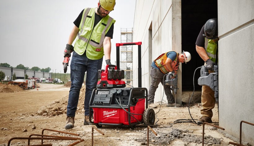Der IRPSUOP2500 arbeitet auf Basis der Milwaukee MX FUEL-Technologie mit einem fest verbauten 2,5 kWh-Akku. Mit einer Spitzenleistung von 7,2 kW und einer Dauerleistung von 3,6 kW eröffnen sich zahlreiche Anwendungsmöglichkeiten. Drei Netzsteckdosen (jeweils gesichert mit Fehlerschutzschalter mit 16 A-Sicherung) erlauben den gleichzeitigen Betrieb mehrerer Netzgeräte oder den Anschluss von Ladegeräten, um Werkzeugakkus direkt auf der Baustelle aufladen zu können.