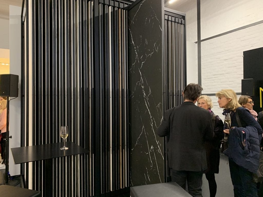 Besonders gespannt waren die knapp 100 Gäste, vorwiegend aus dem Bereich Architektur, dann auf den Hauptgast des Abends, den spanischen Architekten Paul Llimona, der sein bekannte Restaurantprojekt „Enigma“ aus Barcelona vorstellte. Llimona hat mit RCR Architects, den Pritzker Preisträgern 2017 , das spanische Gourmet-Restaurant „Enigma“ von Albert Adria mit Unterstützung von Neolith konzipiert. Im „Engima“ wurden auf über 700qm Fläche ein überaus individuelles Design auf die großformatig verlegten Materialien umgesetzt. Jede Platte ist ein Unikat. Einen Eindruck davon vermittelt auch der folgenden Film: