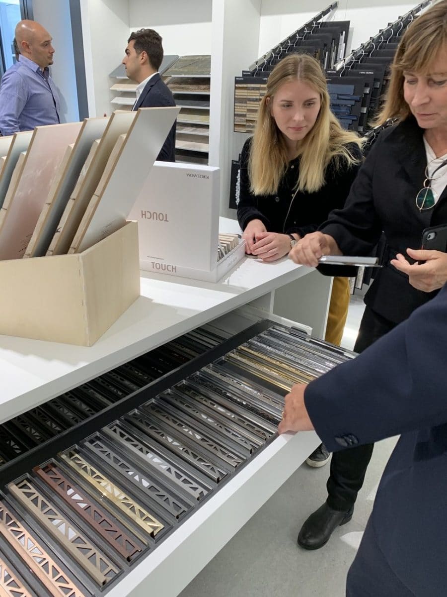 Wie uns Manuel Lozano vom Export Department der Gruppe in Köln erläuterte, sei nach eigenen Marktrecherchen die Architektenszene gerade zwischen Düsseldorf und Köln sehr ausgeprägt. Deshalb lohne sich in der Region eine eigene Ansprache dieser Zielgruppe. Nach einer Terminvereinbarung können sich die Planer, auch mit ihren Kunden, gezielt in der Ausstellung beraten lassen. In der neuen Porcelanosa Ausstellung erfolge aber kein Verkauf, betonte Lozano. Das gesamte Handling, von der Bestellung und Abwicklung, sollen die regionalen Händler fortführen, was in dieser Region vor allem die beiden Branchengrößen Linnenbecker und Schmidt Rudersdorf sind. Beide Handelsunternehmen waren auch bei der Ausstellungseröffnung vertreten.