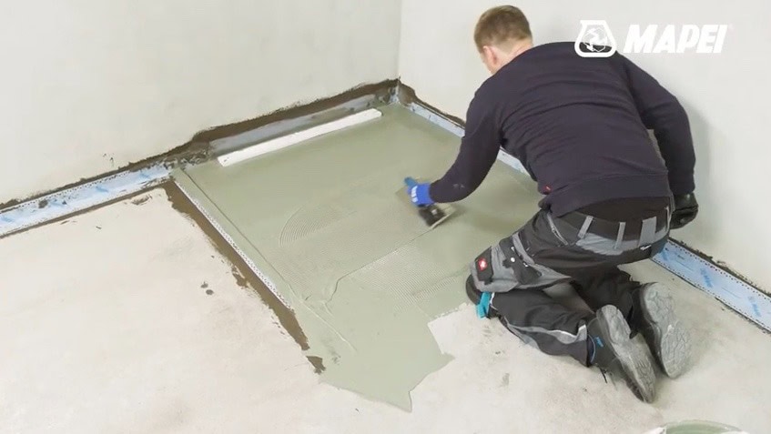 Dieses Video ist eine Schritt-für-Schritt-Anleitung und gibt Tipps zum einfachen Abdichten von Räumen, die regelmäßig Feuchtigkeit und Wasser ausgesetzt sind. Im Fokus stehen die Mapei Produkte Mapelastic Turbo und Mapegum WPS, die auf einer Wand- und Bodenfläche appliziert wurden. Details zur normgerechten Verarbeitung wie die Verwendung des richtigen Werkzeugs, die Vorbereitung der Fläche, das fachgemäße Anmischen der zementären Dichtungsschlämme und die Einarbeitung einer Duschrinne in die Abdichtungsebene werden anschaulich dargestellt.weitere Beiträge über Schlüter