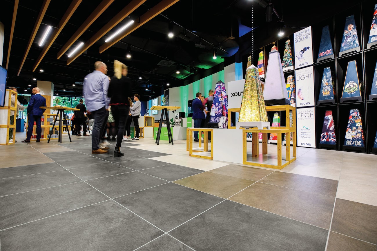 Neuartiges Shopkonzept mit blitzschnell nutzbarem Bodenfliesensystem DryTile