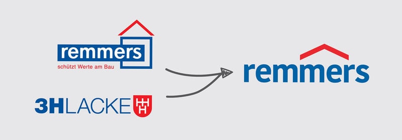 Das neue Logo besteht lediglich aus dem bekannten Remmers-Schriftzug in Blau und dem stilisierten roten Dach. Diese Gestaltung soll die gewachsene Vielseitigkeit der Produkte und Leistungen des Unternehmens visualisieren, die sich nicht mehr nur auf den Bautenschutz beschränken.