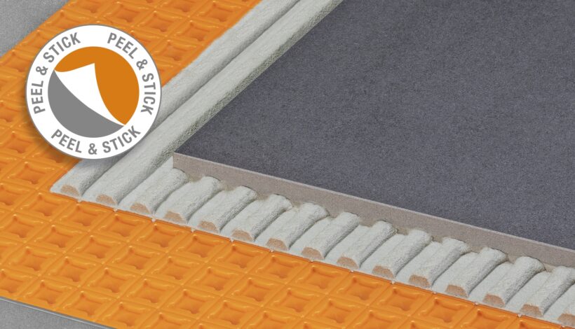 PS steht für „Peel & Stick“, also für „Abziehen und Aufkleben“, und beschreibt das selbstklebende Trägervlies, mit dem die wasserdichte Entkopplungsmatte ausgestattet ist. Es ermöglicht eine direkte Verlegung auf geeigneten Untergründen. So wird nicht nur Zeit, sondern auch Material eingespart, denn die Fliesenkleberschicht unter der Matte entfällt. Bei der Installation lässt sich DITRA-PS außerdem leicht neu positionieren, solange sie noch nicht fest an den Untergrund angedrückt wurde.