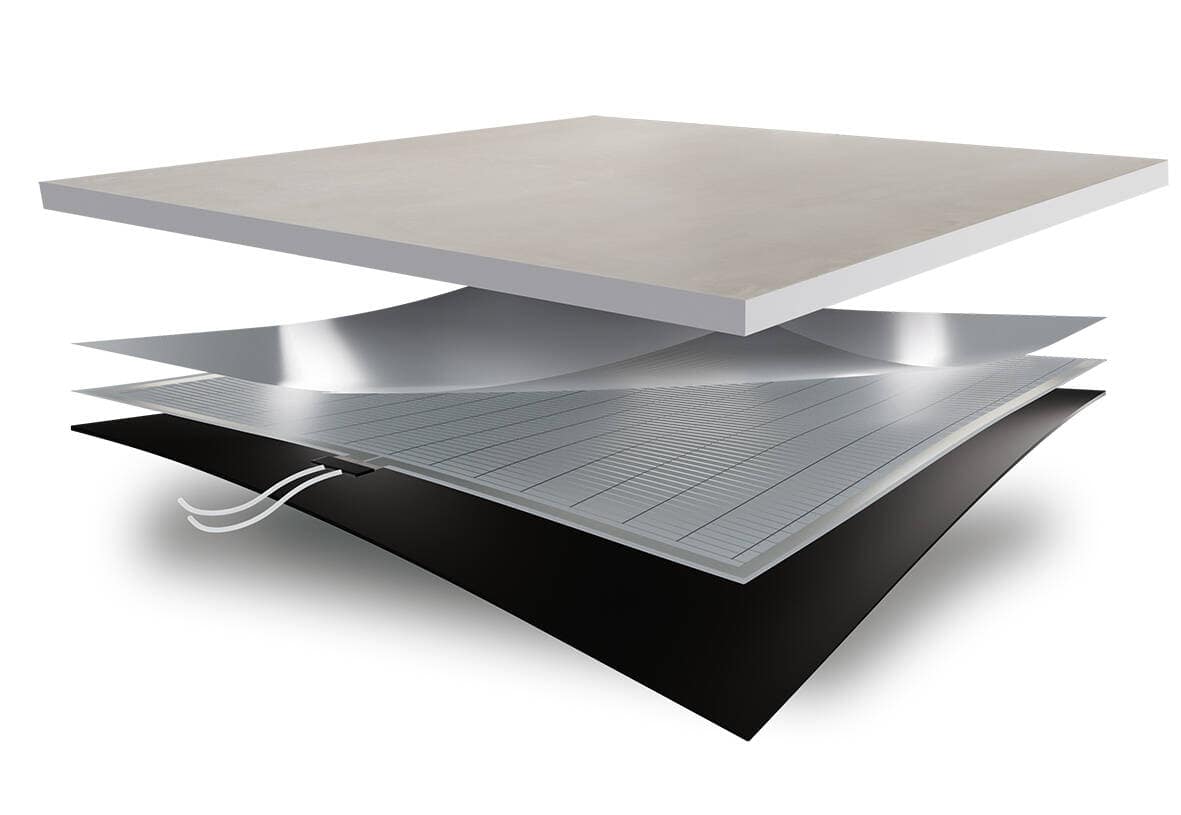 Das LED-Lichtsystem passt auch perfekt zum Gutjahr-Heizsystem für aufgestelzte Beläge, TerraMaxx Comfort. Das Heizelement für den Außenbereich erlaubt es, die Terrasse in der Übergangszeit länger zu nutzen. TerraMaxx Comfort besteht aus einer dünnen Heizfolie mit Isolationsschicht auf der Rückseite. Diese erwärmt den Keramik- oder Natursteinbelag angenehm fußwarm, energiesparend und besonders schnell.