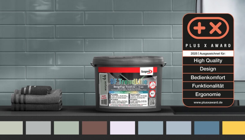 Die farbbrillante DesignFuge TrendLine der Sopro Bauchemie wurde beim renommierten Plus X Award 2025 in gleich fünf Kategorien ausgezeichnet – darunter hohe Qualität, Design, Bedienkomfort, Funktionalität und Ergonomie. Die Fachjury lobt die DF TrendLine als „zukunftsweisende Lösung, die technische Exzellenz mit hoher gestalterischer Qualität verbindet.“ Der Fugenmörtel bietet nicht nur zuverlässige Performance, sondern überzeugt durch Farbtreue, Langlebigkeit und einfache Verarbeitung.