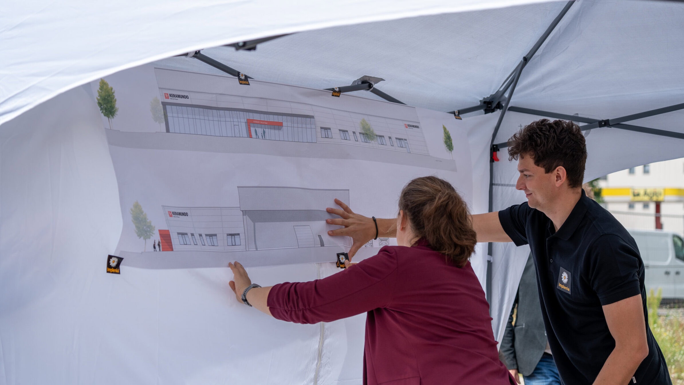 Das knapp 13.000 Quadratmeter große Grundstück wird umfassend neu erschlossen. 4.000 Quadratmeter Dachfläche werden mit Solarmodulen bestückt. Diese decken künftig den Eigenbedarf des Fliesenhändlers und versorgen jeweils acht E-Ladestationen für Pkw und Elektrostapler. Überschüssige Energie wird zudem ins öffentliche Netz eingespeist. Den nachhaltigen Anspruch des Projekts unterstreichen ein begrüntes Dach, Grünflächen auf dem Gelände sowie eine moderne Verkehrsführung. Insgesamt entstehen auf dem neuen Keramundo-Areal 49 Pkw-Stellplätze, sowie separate Stellflächen für die Transporter der Profikunden. Hinzu kommen 17 Fahrrad-Stellplätze.