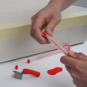 Eine weitere Ausnahme bildete die „Lebende Werkstatt“, in der Anwendungstechniker verschiedener ausstellender Unternehmen Tipps und Tricks zur Verlegung und Montage anspruchsvoller Materialien gaben. Insbesondere bei den zweimal täglich stattfindenden Akemi-Vorführungen des neuen Jollynator-Werkzeugsystems kamen regelmäßig viele Zuschauer zusammen. Um die Anwendung des bei Gehrungsverklebungen vielfach eingesetzten Colourbond-Klebstoffes P+ weiter zu erleichtern, hat Akemi ein System an Applikationswerkzeugen unter der Marke Jollynator neu ins Programm aufgenommen. Hiermit gelingen perfekte Außenkanten noch einfacher als bisher.