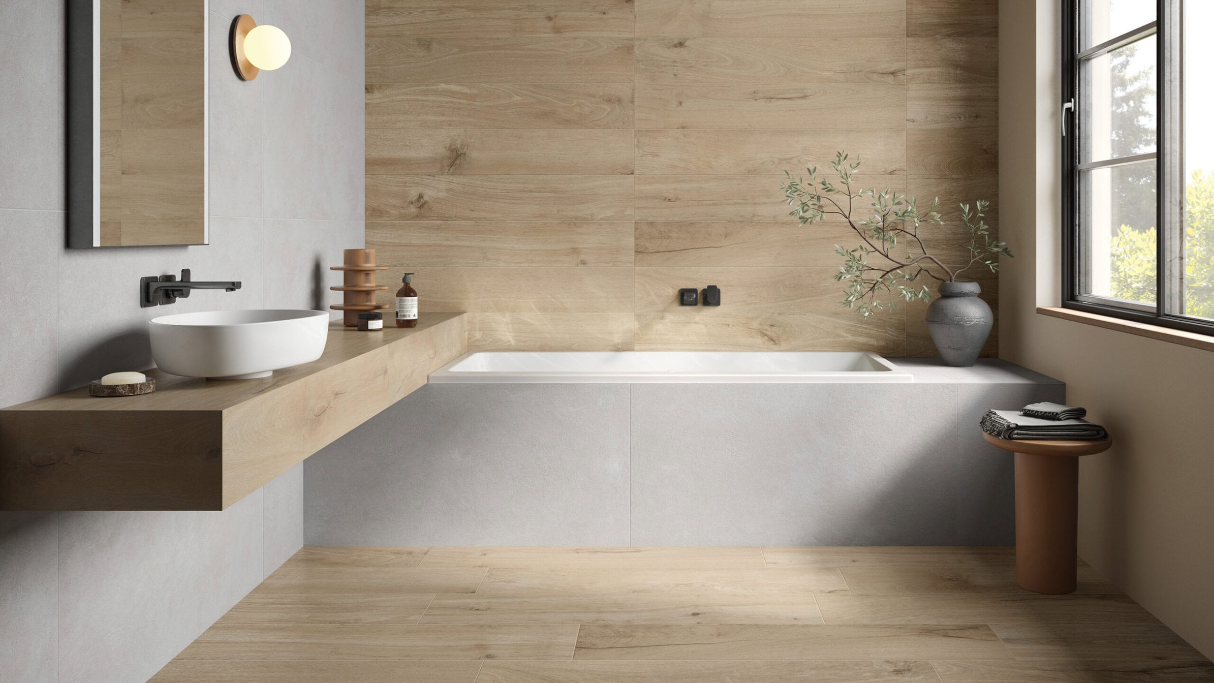 Dazu passend gibt es in jeder Farbe 5 x 120 cm große Sockel, die an schmale Fußleisten erinnern und schöne Verbindungen zwischen Wand und Boden herstellen. Das vielseitige Feinsteinzeugkonzept Oak Flair eignet sich für Raumgestaltungen im gesamten Haus und mit Rutschhemmung R10/A auch für diverse öffentliche Bereiche wie Eingangshallen von Hotels oder Bürogebäuden, für Warte- und Gasträume sowie im Ladenbau – das zeitlos-elegante Design überzeugt in allen Anwendungen mit seinem authentischen Holz-Charakter. Gleichzeitig ist Oak Flair dank der reinigungsfreundlichen Oberflächenausrüstung VilbostonePlus besonders pflegeleicht und im Gegensatz zu Echtholz oder Laminat unempfindlich gegenüber Feuchtigkeit und UV-Licht.