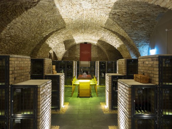 Im Sanitärbereich des Vinarmariums setzt Kiegele auf Villeroy & Boch: „Bei der Auswahl der Sanitärkeramik war es uns wichtig, dass sich die Produkte harmonisch in das moderne aber zugleich rustikale Interior der Lounge und des Gewölbekellers einfügen, ohne von der besonderen Atmosphäre abzulenken. Das zurückhaltende Design der verbauten Produkte hat uns gut gefallen und war mitausschlaggebend für unsere Wahl.“