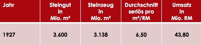 Und zum Abschluß noch ein hisotrisches „Bonbon“: Die erste Statistik über den Fliesenabsatz im „Deutschen Reich“ wurde 1927 veröffentlicht. Übrigens sind alle Statistiken – Absatz und Umsatz – seit 1927 – 2017 in der Datenbank von Hansa hinterlegt.